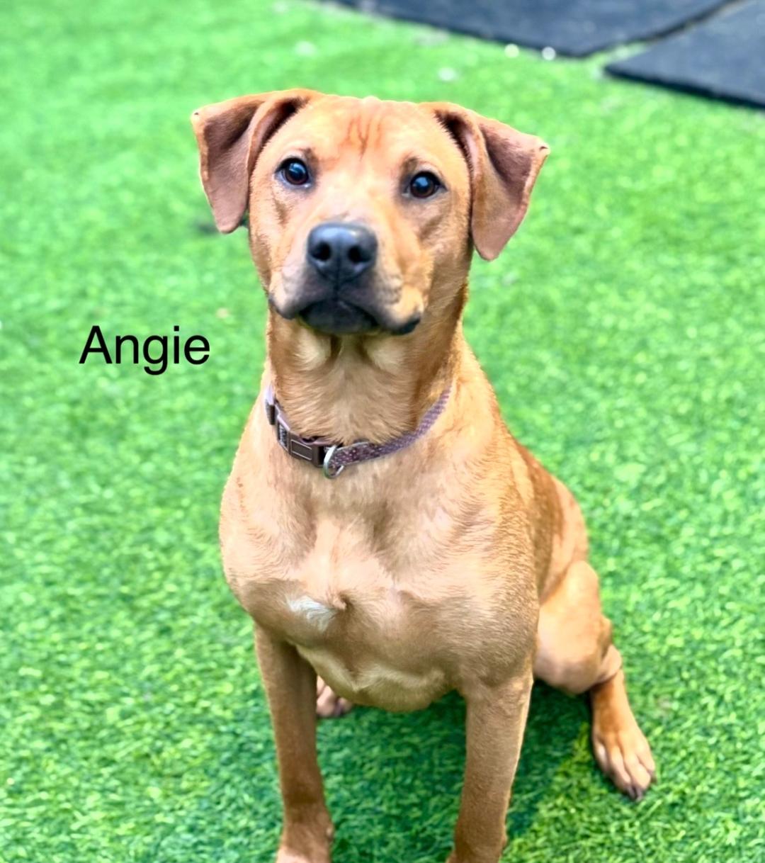Angie is a 2 year old Lab mix. We rescued her and her brother from the deserts of California. Not a bonded pair. She is a very sweet girl and loves people. She does great with all dogs, all sizes. She knows various commands. She grew up with a special needs child and was fabulous! Angie is also cat friendly! She is good on and off leash. She is kennel and potty trained. She is a low energy dog and prefers spending time cuddling with her family. She is at our facility and needs a foster or adopter.