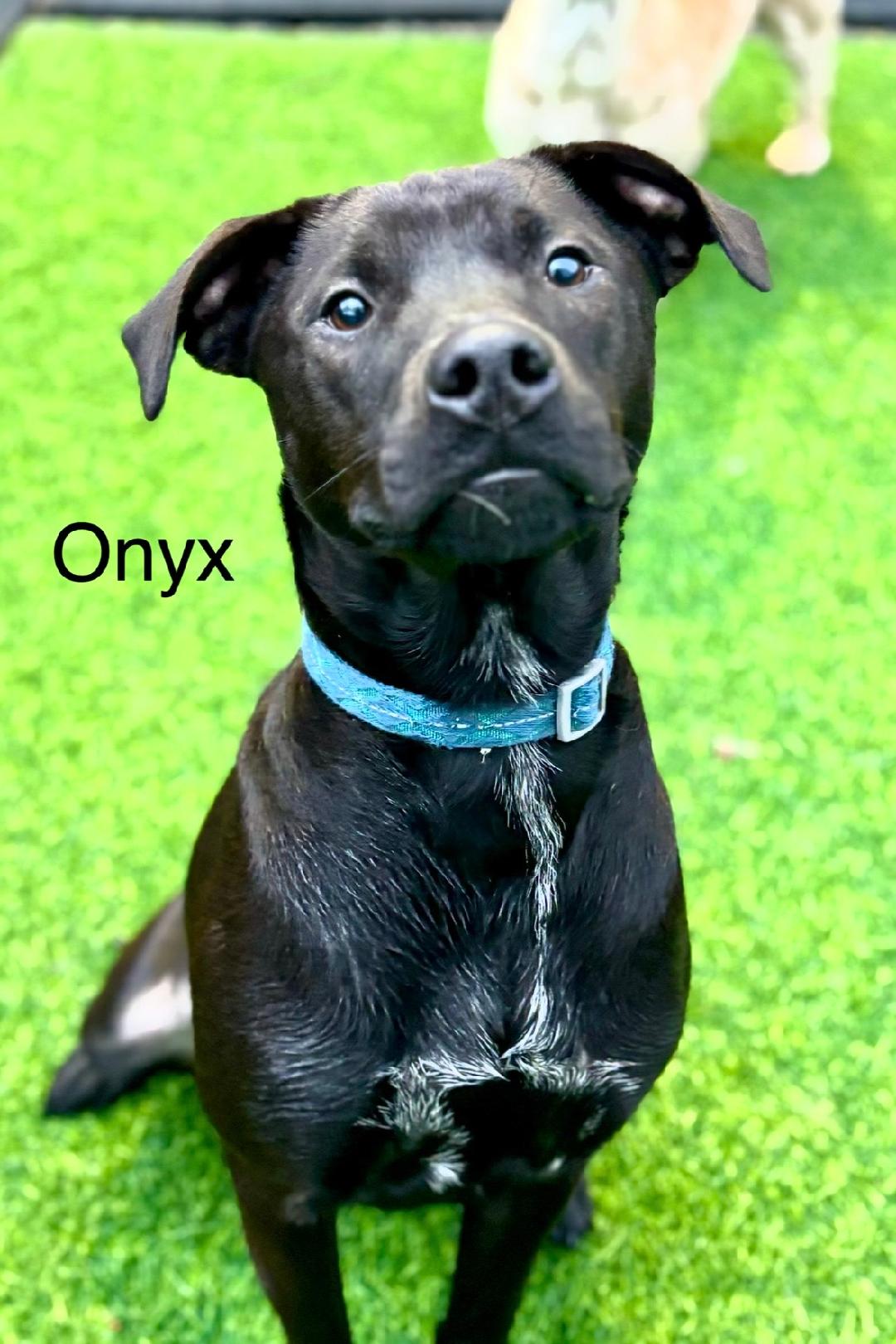 Onyx is a 2 year old Lab mix Brother to Angie but not bonded. Heis a very sweet boy and loves people. He is good with other dogs. He knows various commands. He grew up with a special needs child and was fabulous! Onyx is also cat friendly! He is kennel and potty trained. He is good off and on leash. He is a medium energy dog and loves playing outside. He also loves the water. He is at our facility and needs a foster or adopter.